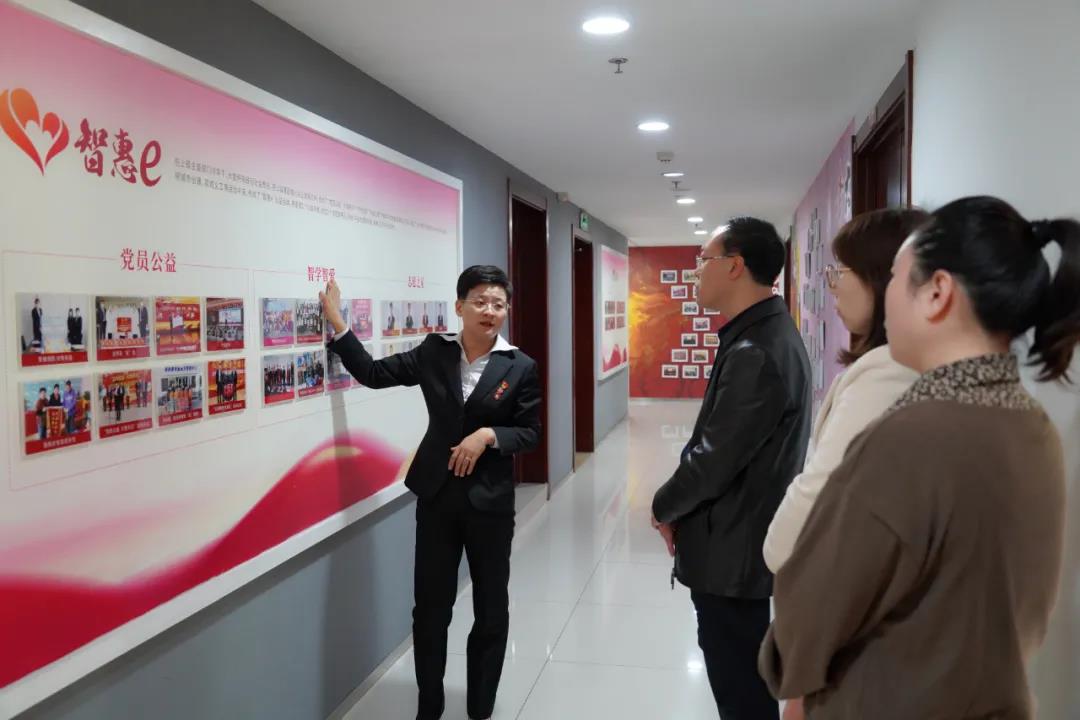 王現(xiàn)芹帶領(lǐng)大家參觀了黨建長(zhǎng)廊、黨員活動(dòng)室,翻閱大智黨建相關(guān)資料,并觀看黨建宣傳片。大家對(duì)大智的黨建工作給予了充分肯定和高度認(rèn)可。
