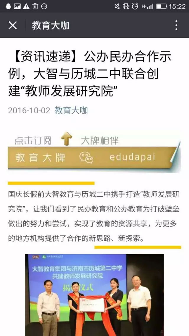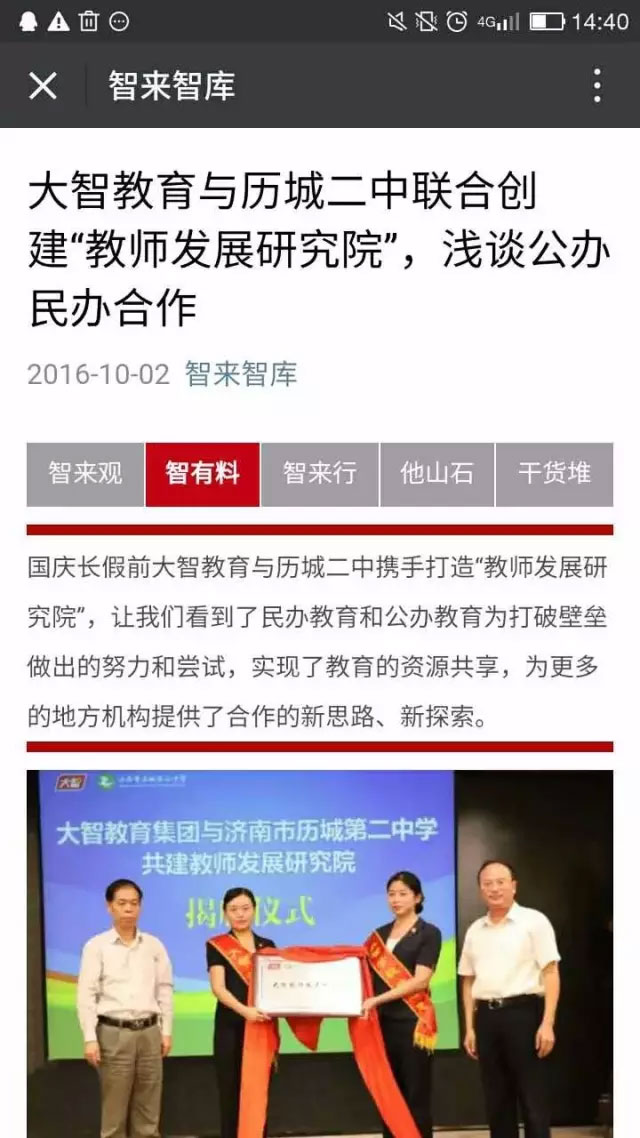 來自齊魯網(wǎng)的第一時間報道稱,大智“為民辦教育和公辦教育之間打破壁壘,實現(xiàn)教育資源共享、優(yōu)勢互補、協(xié)同發(fā)展提供了新思路、新探索。”