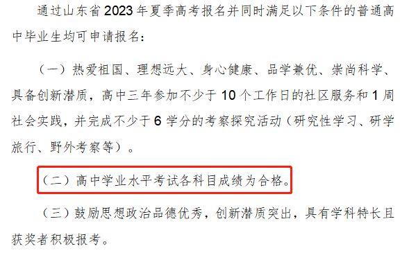?青島大學(xué):在2023年綜合評價招生的報名條件中有明確的規(guī)定,普通高中學(xué)業(yè)水平合格考試10門科目全部合格。