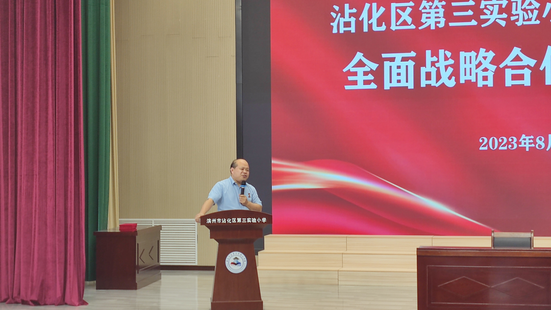 大智銘師負責人張朋院長出席會議,并做了戰(zhàn)略合作重要講話。張院長首先對沾化區(qū)教體局、沾化區(qū)第三實驗小學教育集團的支持與信任表達了真誠的感謝。他在講話中指出:教師隊伍是國家教育強國戰(zhàn)略的主力軍,是落實立德樹人根本任務的核心崗位,唯有教師教育教學水平緊跟國家要求,才能培育出合格的新時代社主義事業(yè)的建設(shè)者和接班人,大智銘師定會不負信任,集頂尖專家力量助力學校教育教學水平再提升。