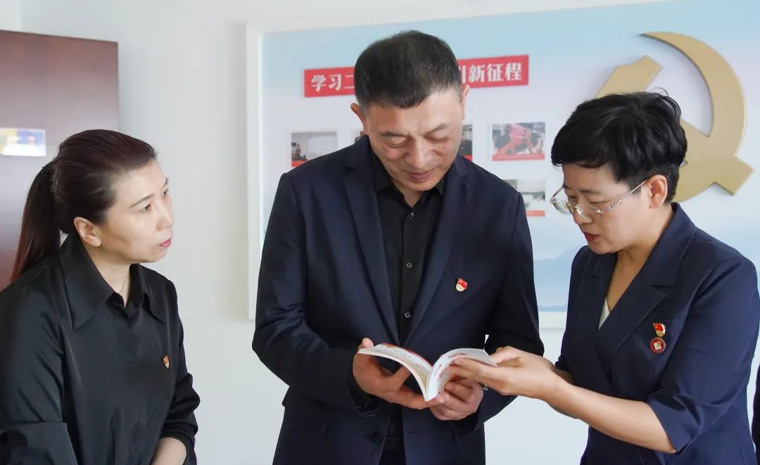 參觀黨員活動(dòng)室,翻閱查看大智黨建相關(guān)資料。