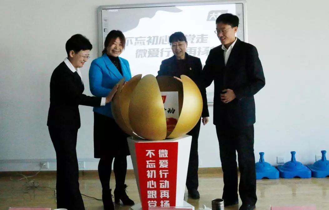 中共濟(jì)南市歷下區(qū)委副書記尹紅梅、共青團(tuán)濟(jì)南市委副書記王友進(jìn)、解放路黨工委書記仵愛之、大智控股集團(tuán)黨委書記、副總裁、好媽媽俱樂部主席王現(xiàn)芹共同按動“微愛行動”啟動球,新一年度“微愛行動”正式啟動!