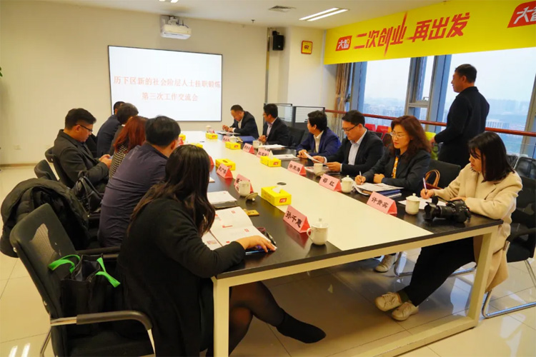 11月20日下午,歷下區(qū)新的階層人士掛職鍛煉第三次交流會(huì)在大智控股集團(tuán)召開(kāi),歷下區(qū)委常委、統(tǒng)戰(zhàn)部部長(zhǎng)杜寶現(xiàn),區(qū)委統(tǒng)戰(zhàn)部二級(jí)調(diào)研員、區(qū)社院副院長(zhǎng)高振華出席會(huì)議。