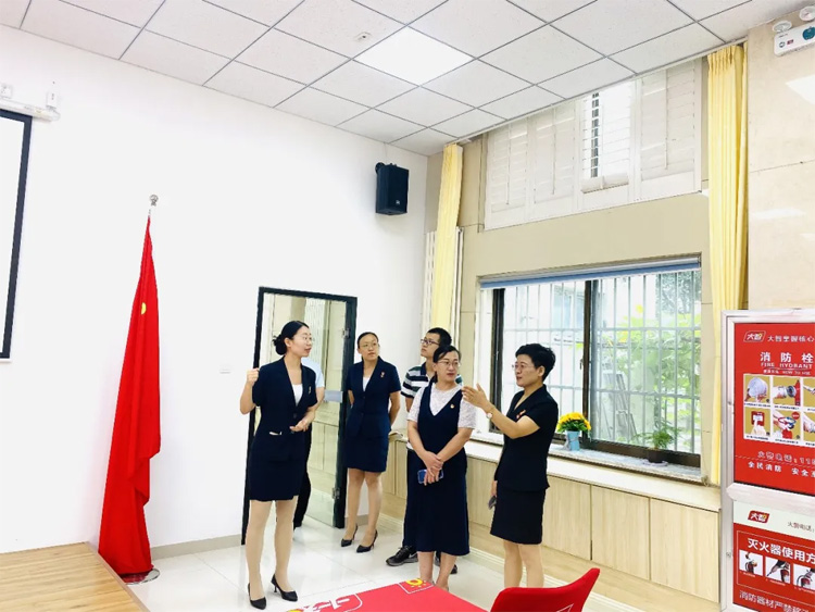 07月26日,淄博市馬尚街道組織部部長黃文娟、馬尚街道團(tuán)委書記趙淦一行到大智淄博區(qū)域調(diào)研黨團(tuán)建設(shè)工作,大智控股集團(tuán)黨委書記王現(xiàn)芹、大智淄博區(qū)域黨支部書記田莎莎熱情接待。