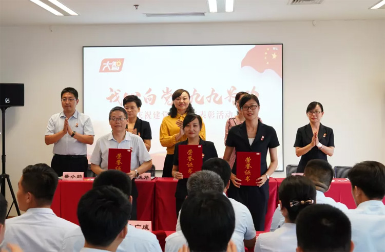 現(xiàn)場還對大智此前開展的“書記上黨課”微黨課大賽和“學(xué)習(xí)強國”知識競賽獲獎黨員進行了表彰。