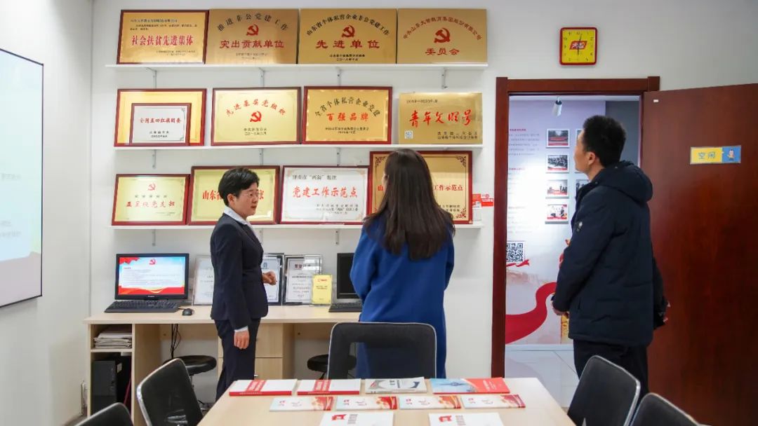 王現(xiàn)芹帶領(lǐng)大家參觀了黨建長廊,詳細介紹了大智組織架構(gòu)、企業(yè)文化等相關(guān)情況,以及“智惠黨建一三九”黨建工作模式,黨建引領(lǐng)下的“一帶一促”群團建設(shè)理念和“智惠+”群團建設(shè)模式。大家對大智的黨建工作給予了高度評價。