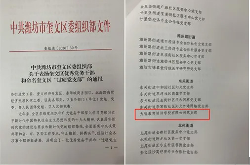近日,在《中共濰坊市奎文區(qū)委組織部關(guān)于表?yè)P(yáng)奎文區(qū)優(yōu)秀黨務(wù)干部和命名奎文區(qū)“過(guò)硬黨支部”的通報(bào)》中,大智濰坊區(qū)域黨支部被評(píng)為“過(guò)硬黨支部”。大...